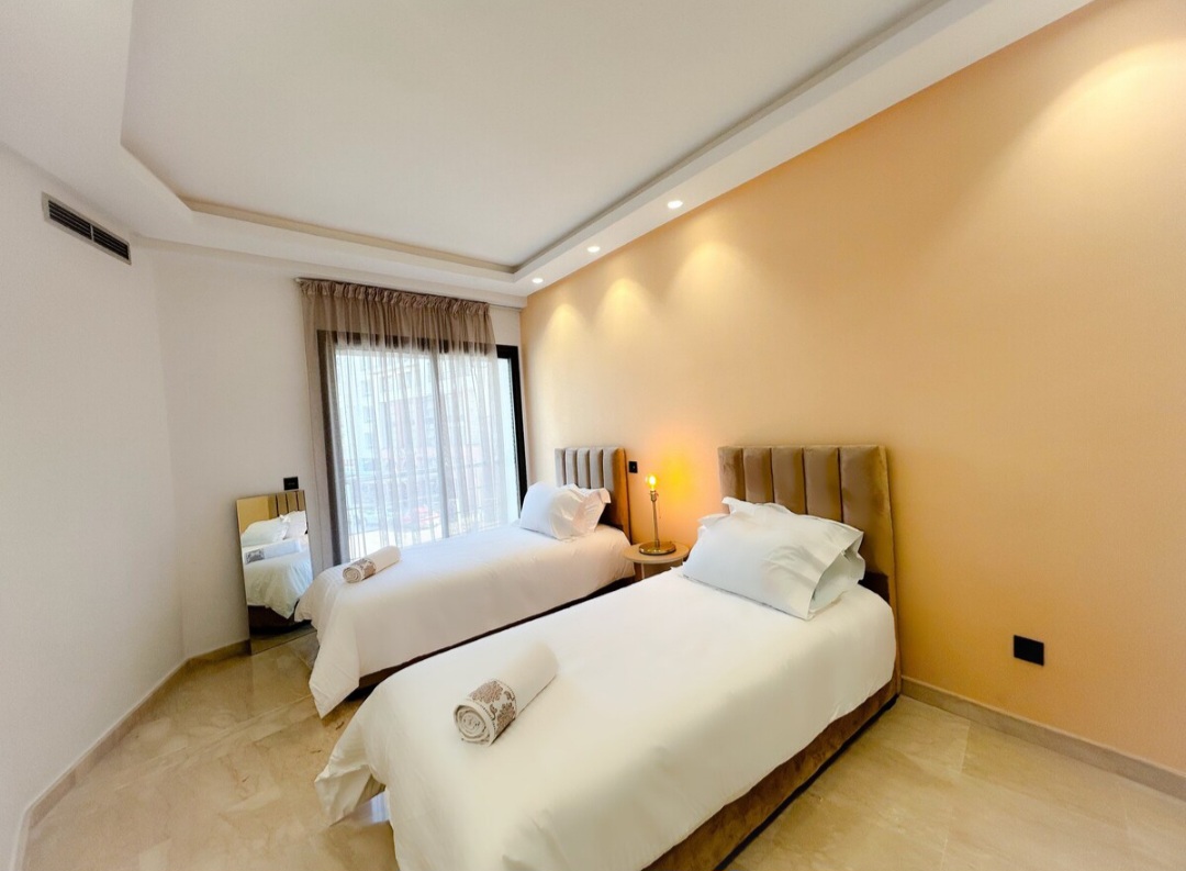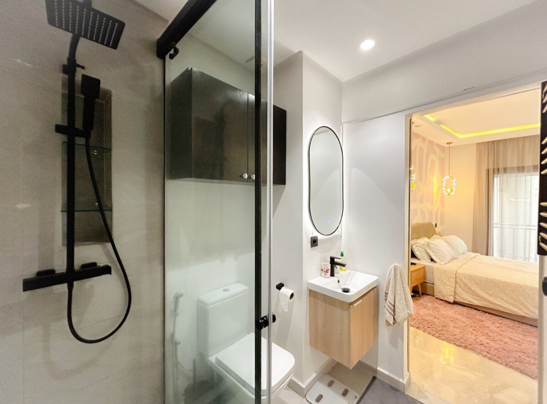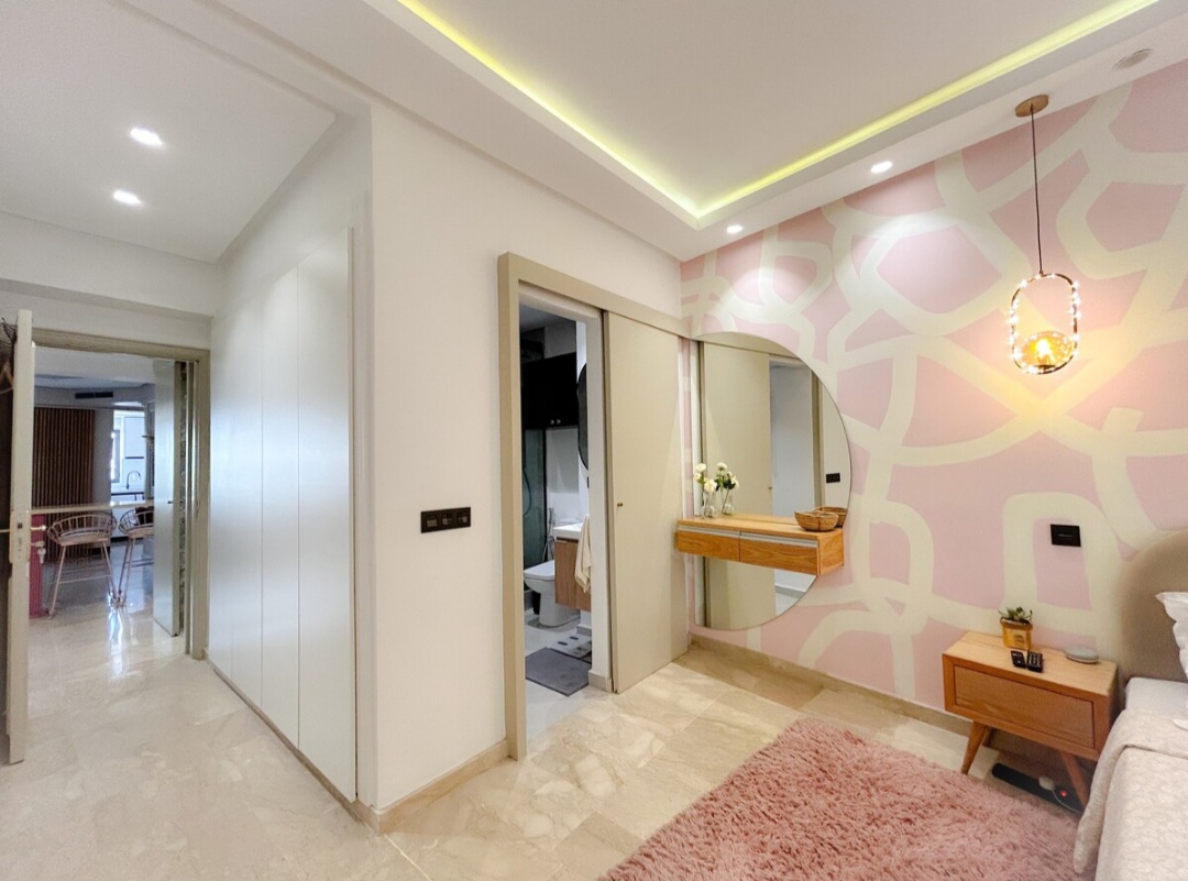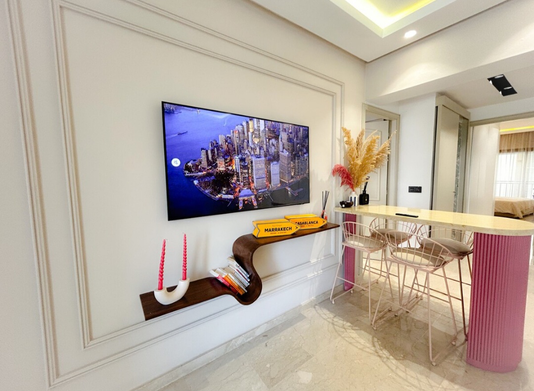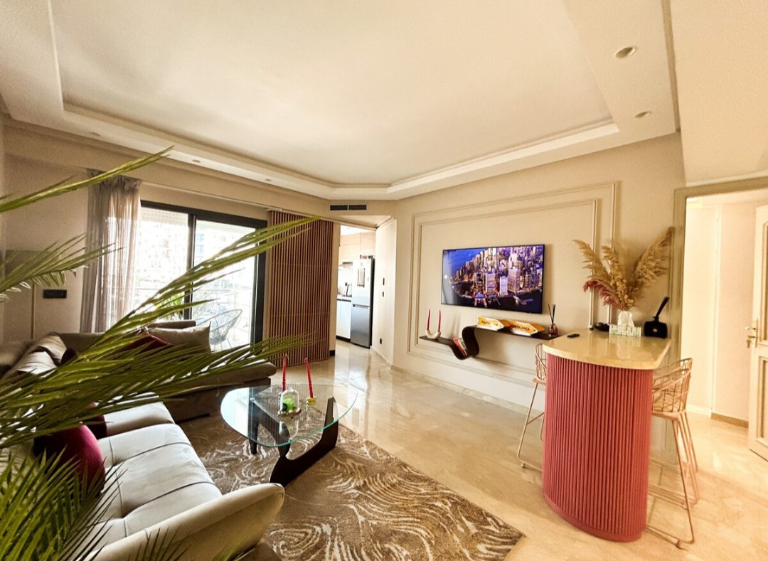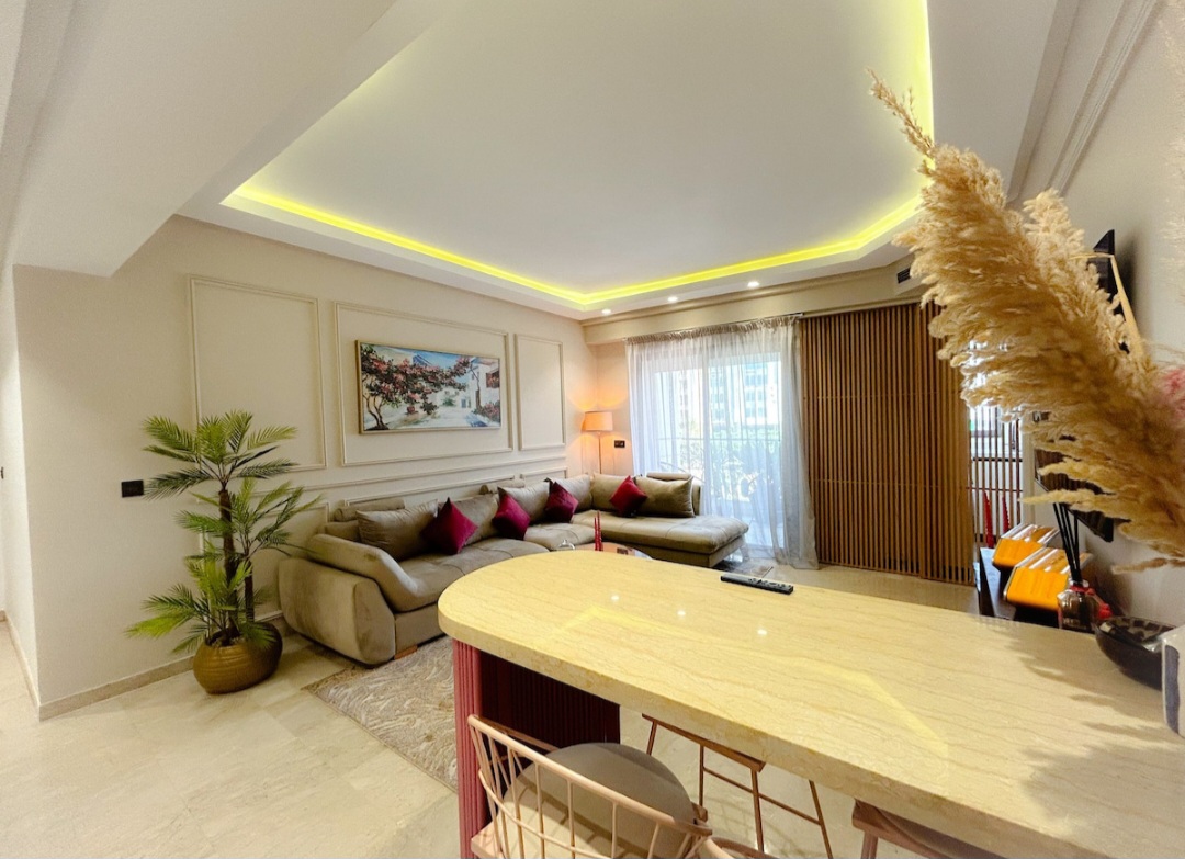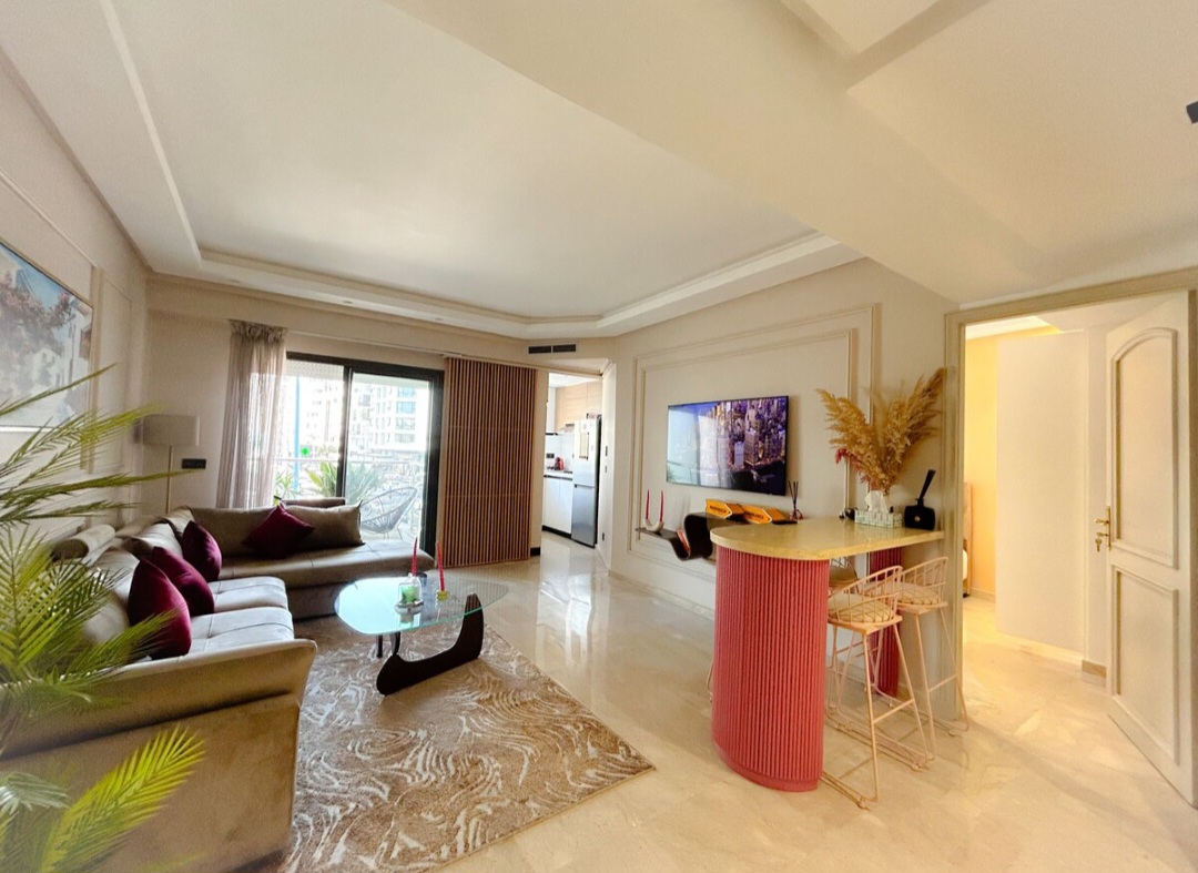Appartement central 2 chambres, salon au cœur de Casablanca (Urban Square), bien équipé avec une décoration intérieure cosy et élégante pour un moment de détente.