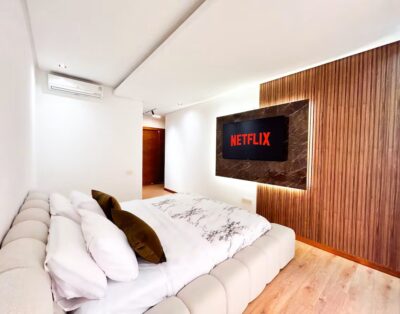 L’appartement est entièrement climatisé pour un confort optimal, et dispose également d’un parking privé gratuit pour les invités. Il est parfait pour les vacances en famille ou entre amis, ou pour les voyageurs d’affaires en quête d’un lieu de séjour confortable et bien situé.