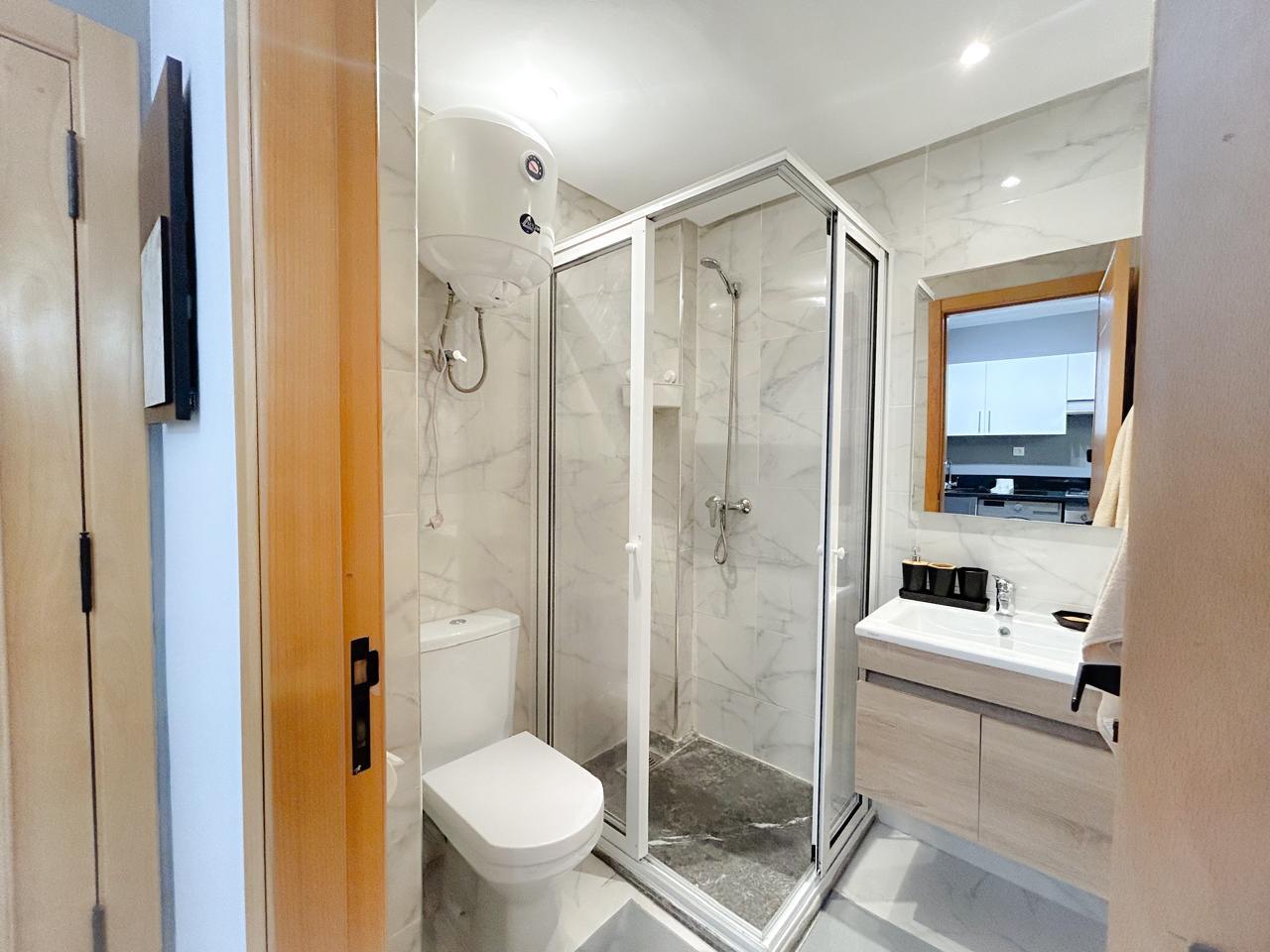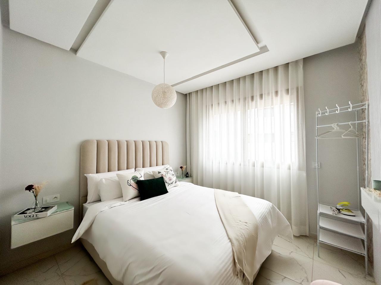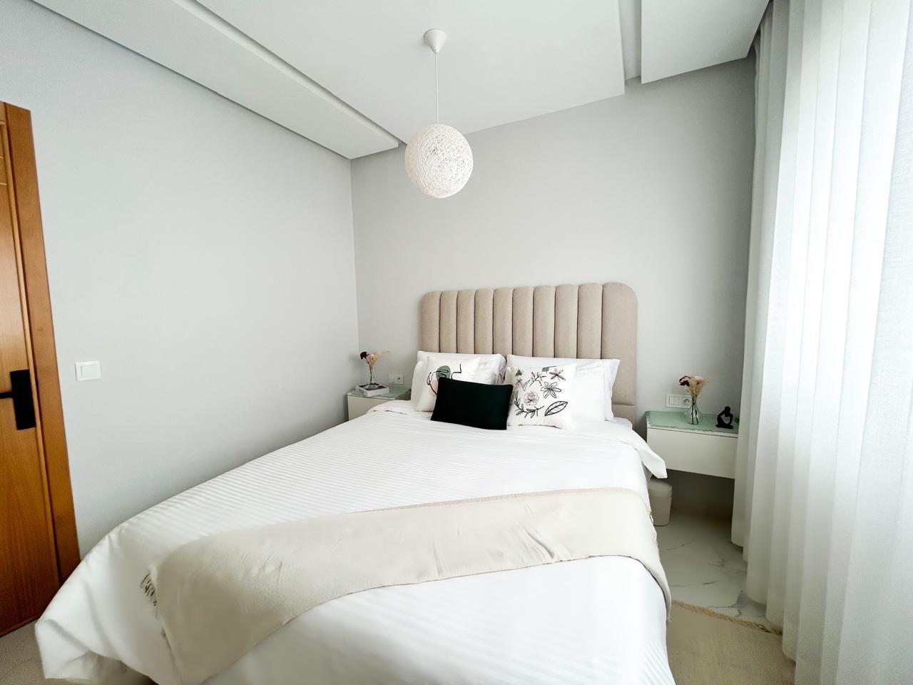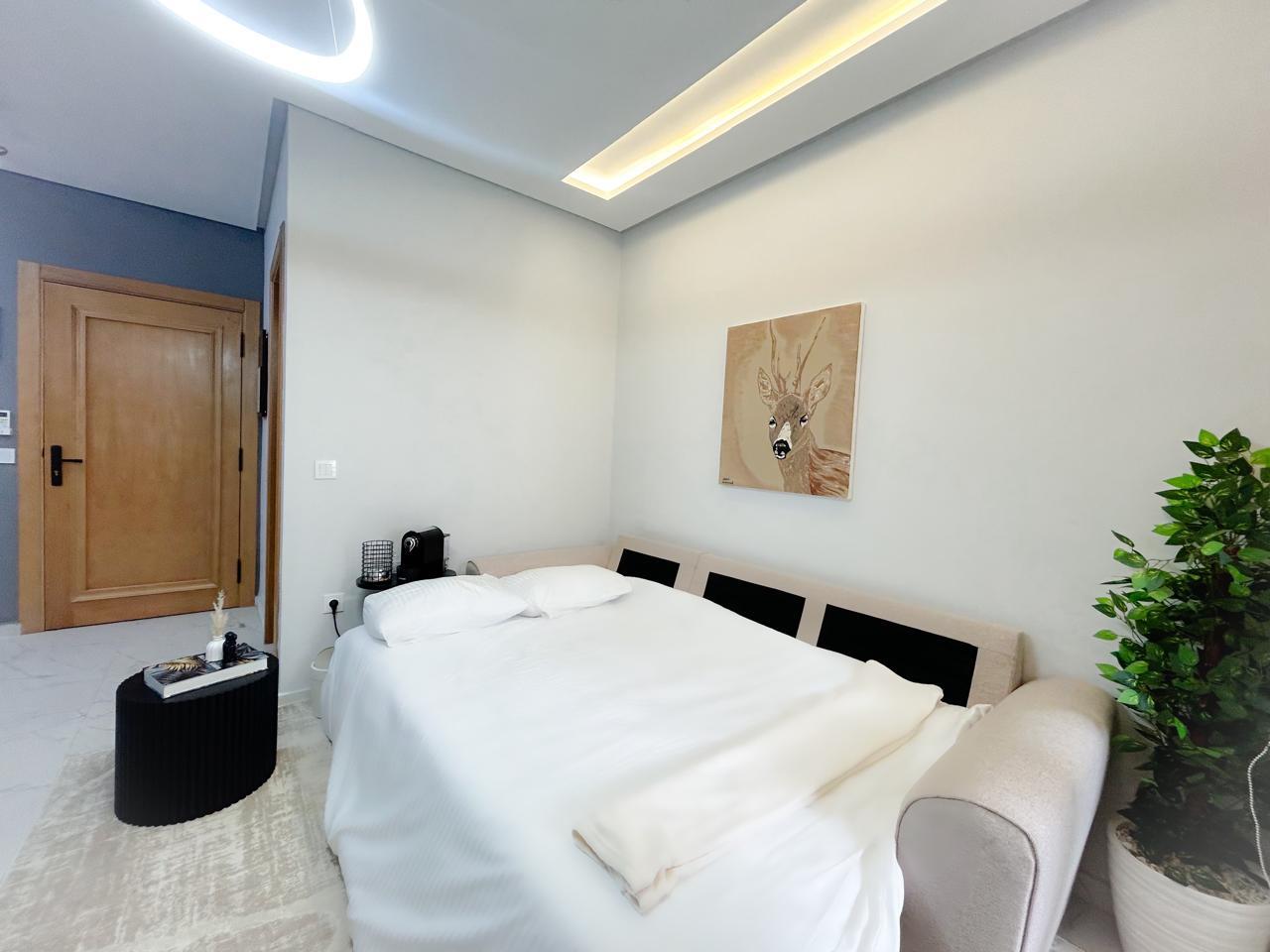 Cet bel appartement moderne, d’une chambre, allie avec finesse confort et élégance. Le salon spacieux et lumineux offre un cadre chaleureux, propice à la détente. La cuisine américaine ouverte, entièrement équipées.