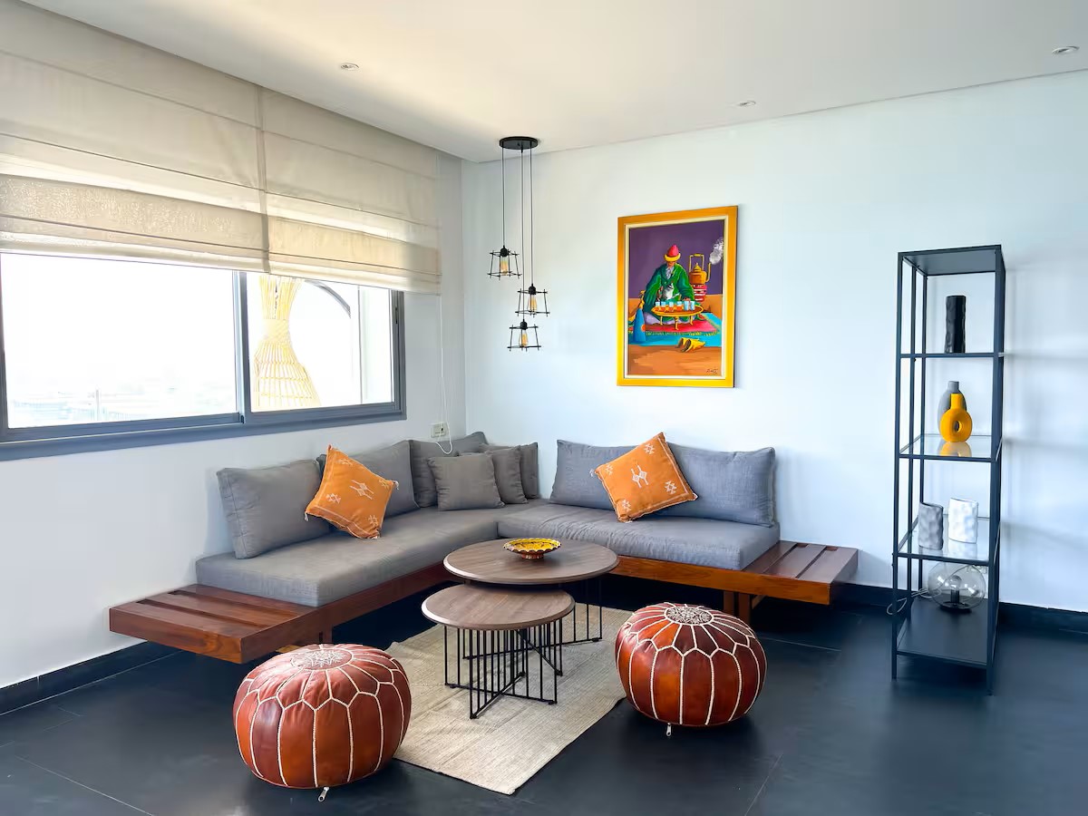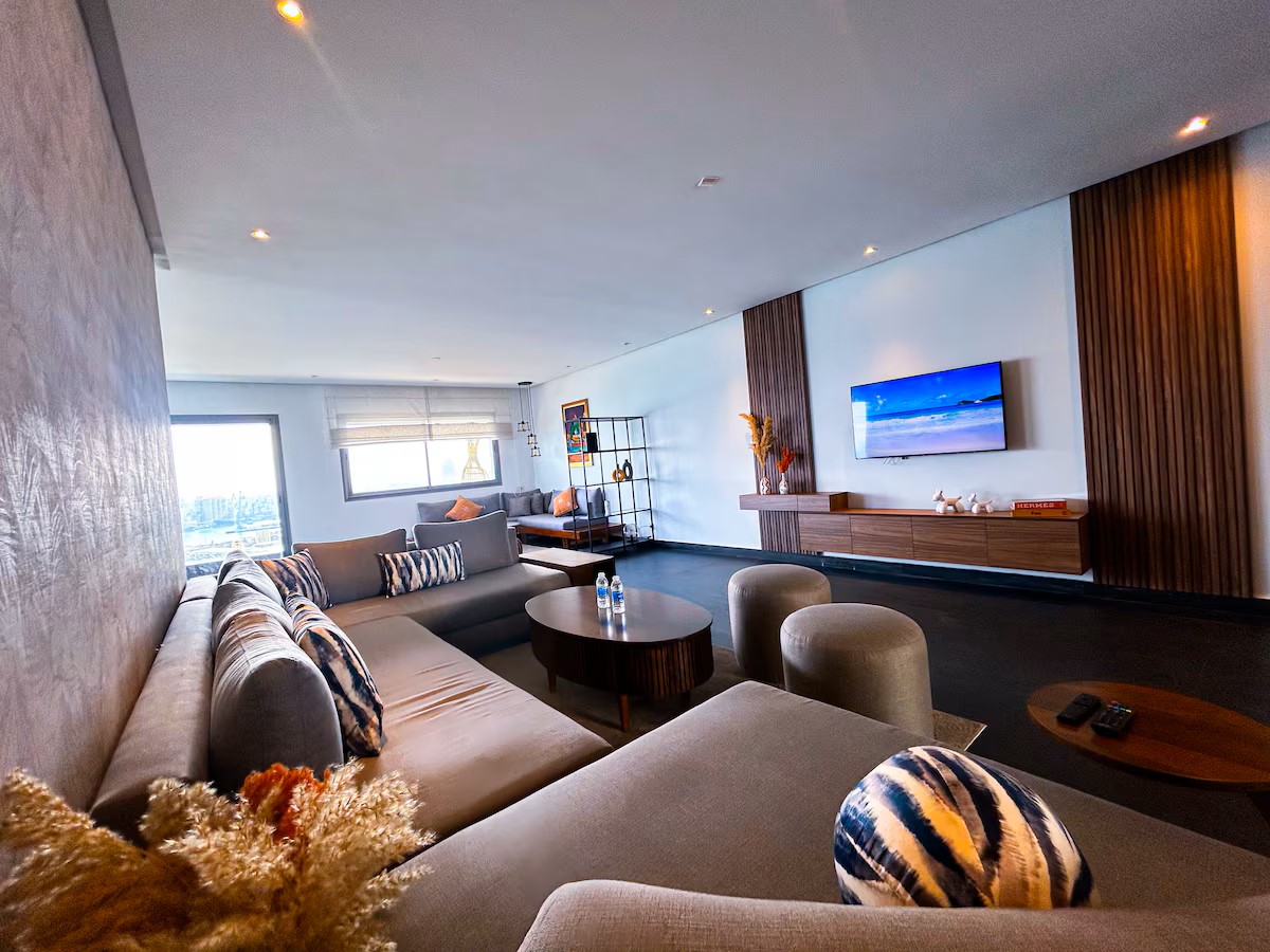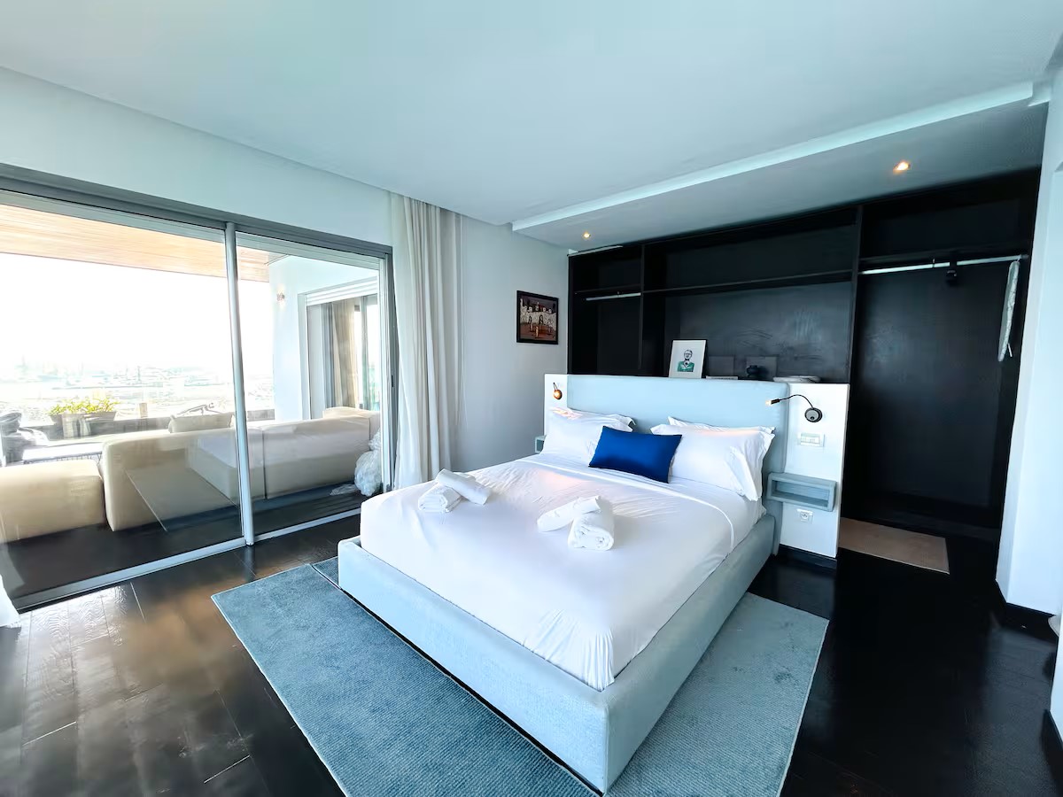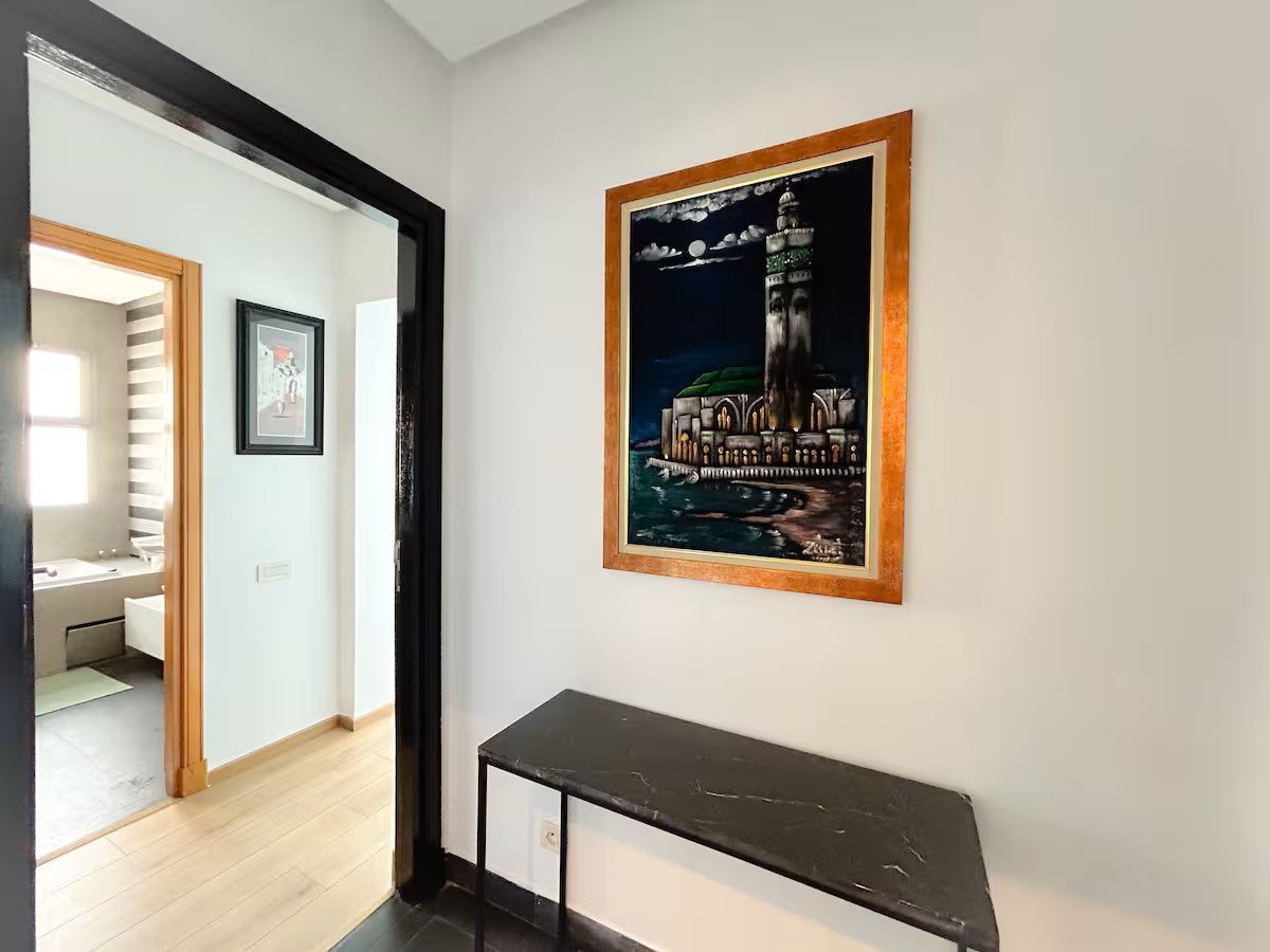 Que vous soyez en voyage d’affaires ou en vacances, cet immense appartement est l’endroit idéal pour allier travail et détente. Profitez chaque matin d’un lever de soleil à couper le souffle depuis votre terrasse privée, offrant une vue panoramique sur l’Atlantique et la Mosquée Hassan II.
